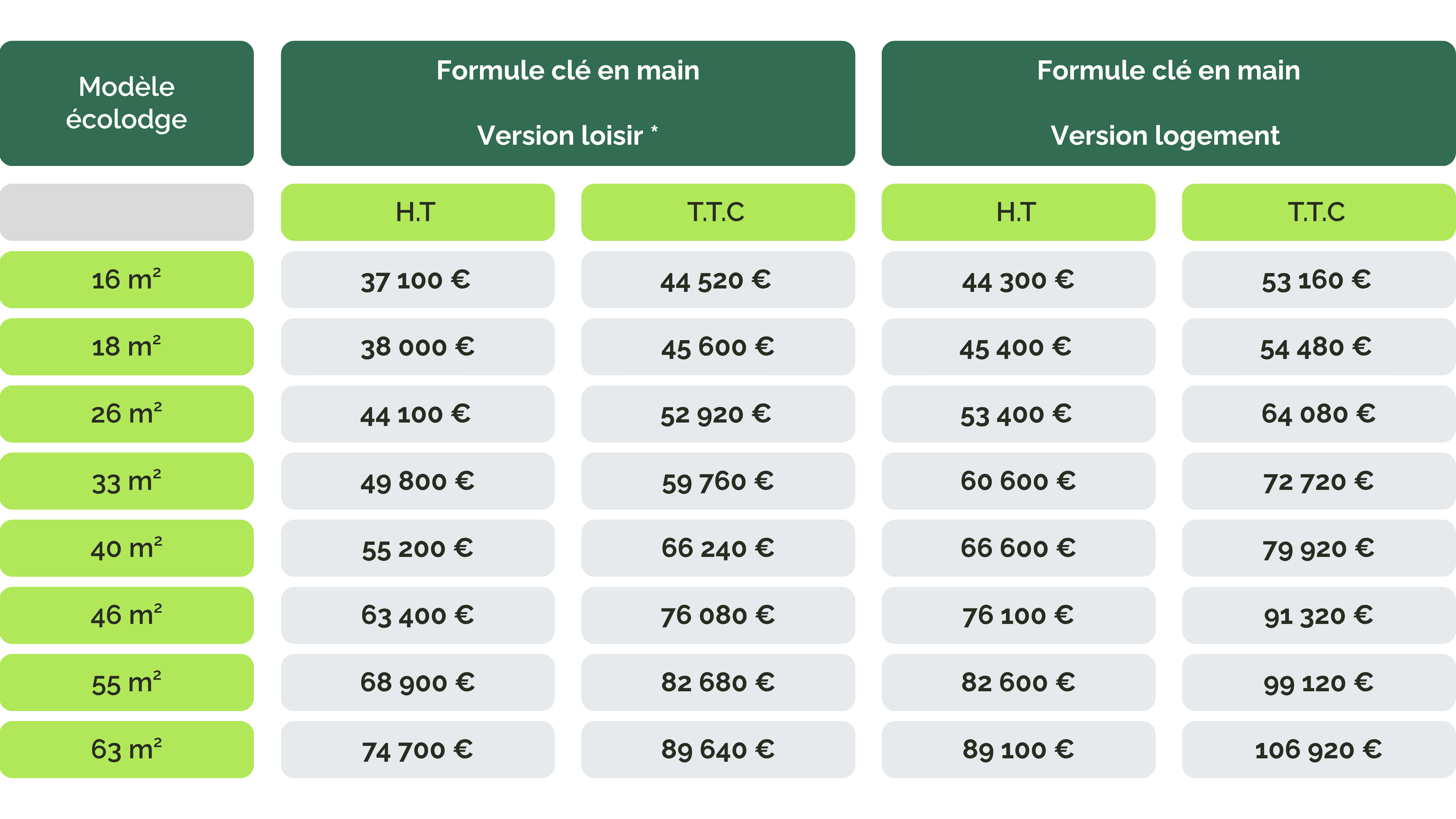(*) Hors transport, adaptation au sol et raccordement des réseaux pour un modèle version loisirs