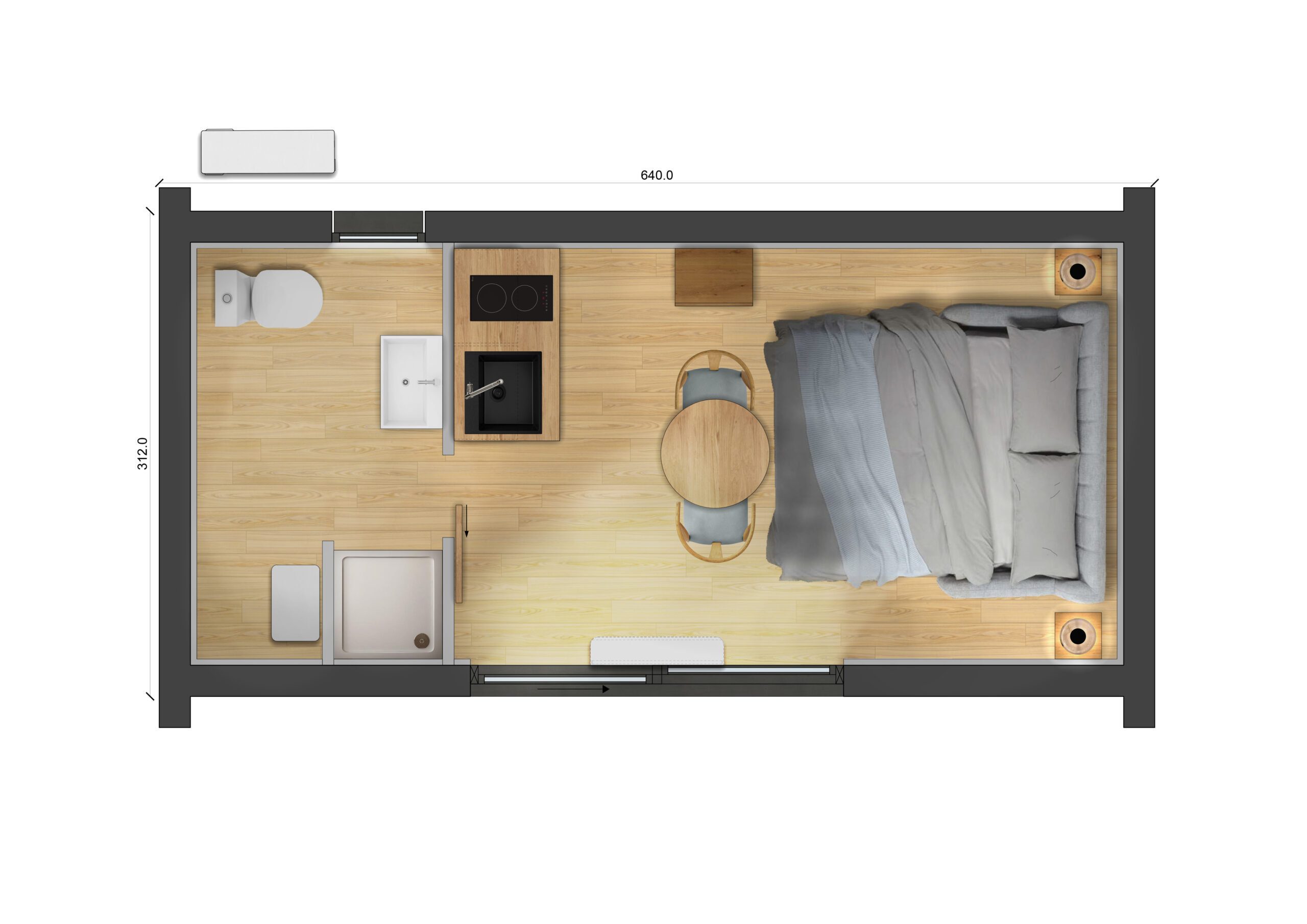 Dimensions extérieures 6,40 x 3,12 m