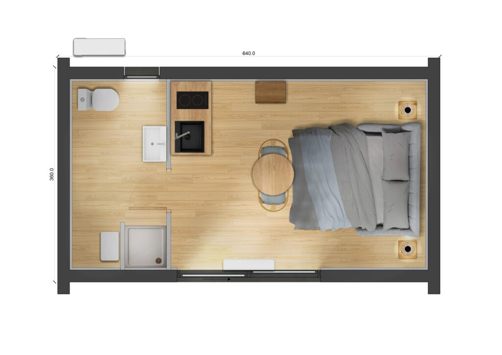 Avec ses 18 m², cet habitat écologique offre un parfait équilibre entre compacité et confort. Conçu pour accueillir jusqu’à 2 à 3 personnes, il propose une surface optimisée qui permet d’intégrer davantage de rangements, un coin bureau ou un espace détente. Durable, confortable et bas carbone, c’est l’alternative idéale pour un hébergement insolite, un studio indépendant ou un petit bureau lumineux au cœur de la nature.