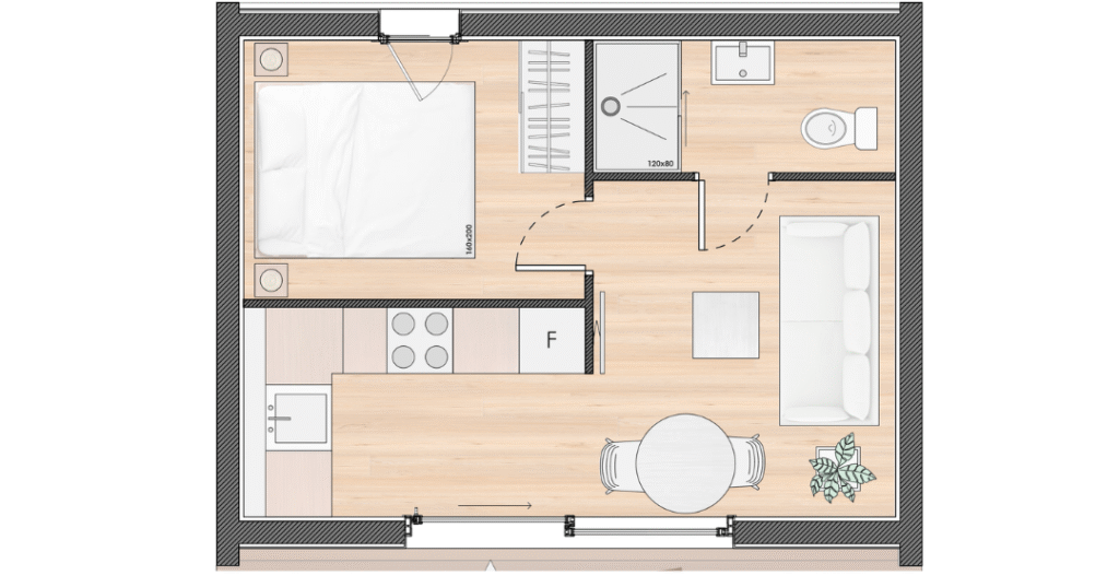 - Airbnb / location saisonnière : un format compact mais complet, idéal pour un couple ou une petite famille.