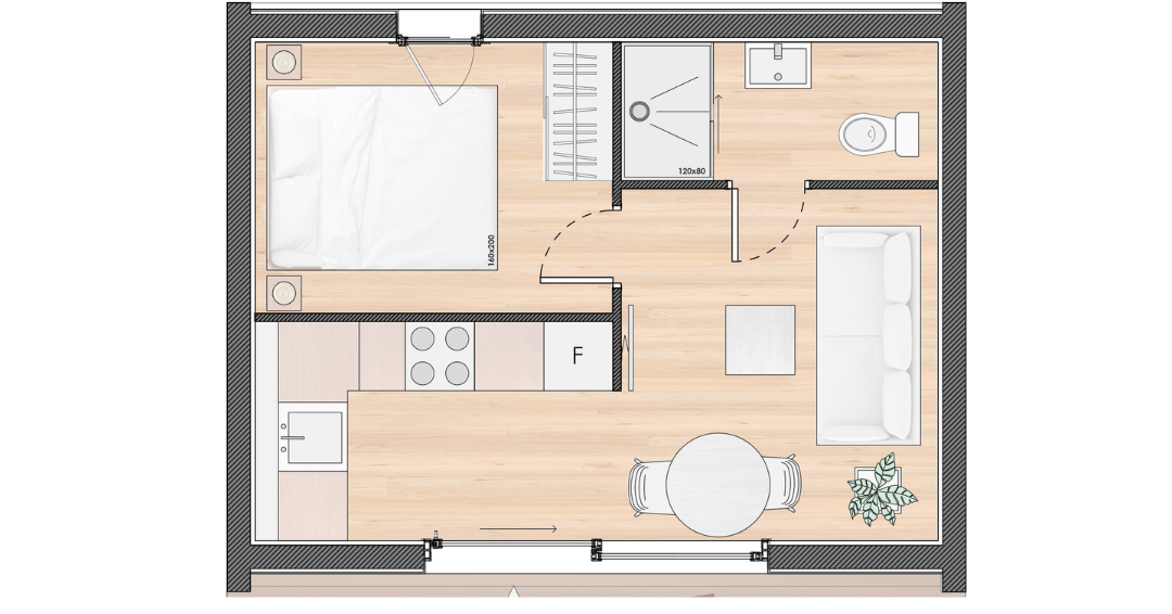 Avec ses 26 m² parfaitement optimisés, cet écolodge franchit un cap en termes de confort et de fonctionnalité. C’est le premier modèle de la gamme à proposer une véritable séparation entre l’espace nuit et l’espace jour, pour plus d’intimité et de confort. Il intègre une chambre double indépendante, une cuisine équipée, un espace repas convivial, un salon cocooning et une salle d’eau moderne. Conçu pour accueillir jusqu’à 4 personnes, il offre une expérience de vie compacte, chaleureuse et respectueuse de l’environnement.