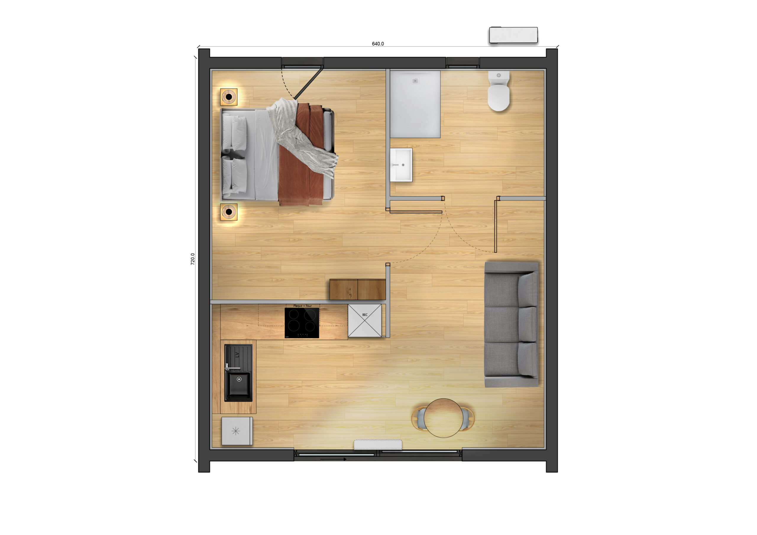 Conçu selon les normes Personne à Mobilité Réduite (PMR), cet écolodge de 40 m² allie confort moderne, durabilité et praticité.