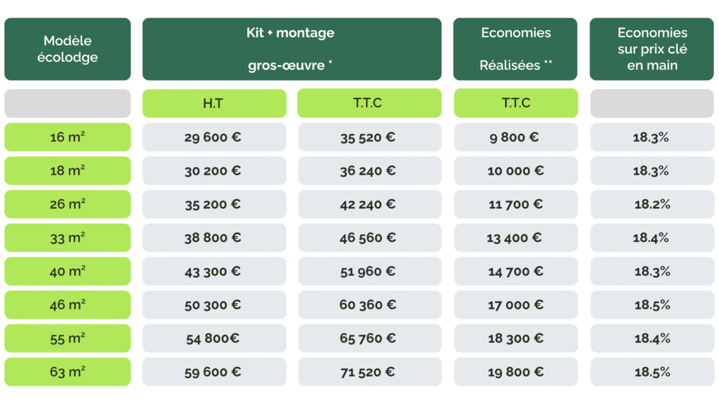 (*) Hors transport, adaptation au sol et raccordement des réseaux